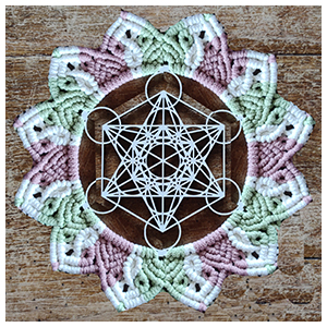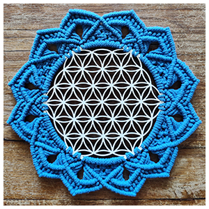 Chaque dessin de géométrie sacrée contient en lui une vibration particulière. Il est gravé au laser sur une plaque de bois, soit en mdf blanc, soit en contreplaqué. La géométrie est ensuite décorée par de la corde tressée.