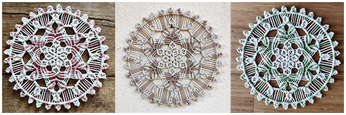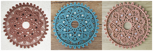 Le coeur du mandala est toujours conçu en fil naturel ou naturel doré. Les feuilles qui l’entourent sont réalisées en différentes couleurs.